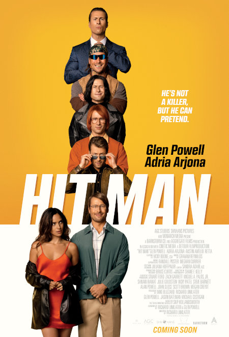 Oscar-Nominated director Richard Linklater’s sunlit neo-noir stars Glen Powell as strait-laced professor, Gary Johnson, who moonlights as phony hit man for the New Orleans Police Department. Preternaturally gifted at inhabiting different guises and personalities to catch hapless people hoping to bump off their enemies, Gary descends into morally dubious territory when he finds himself attracted to one of those potential criminals, a beautiful young woman named Madison (Adria Arjona). As Madison falls for one of Gary’s hit man personas – the mysteriously sexy Ron - their steamy affair sets off a chain reaction of play acting, deception, and escalating stakes.