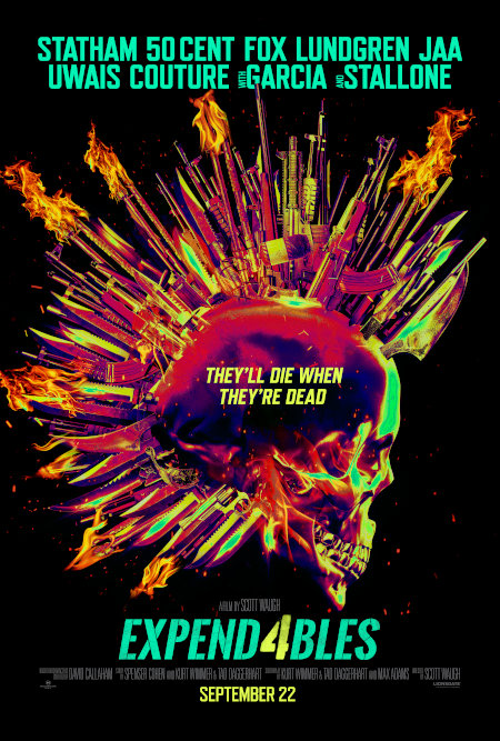 A new generation of stars join the world’s top action stars for an adrenaline-fueled adventure in Expend4bles. Reuniting as the team of elite mercenaries, Jason Statham, Dolph Lundgren, Randy Couture, and Sylvester Stallone are joined for the first time by Curtis “50 Cent” Jackson, Megan Fox, Tony Jaa, Iko Uwais, Jacob Scipio, Levy Tran, and Andy Garcia. Armed with every weapon they can get their hands on and the skills to use them, The Expendables are the world’s last line of defense and the team that gets called when all other options are off the table. But new team members with new styles and tactics are going to give “new blood” a whole new meaning.